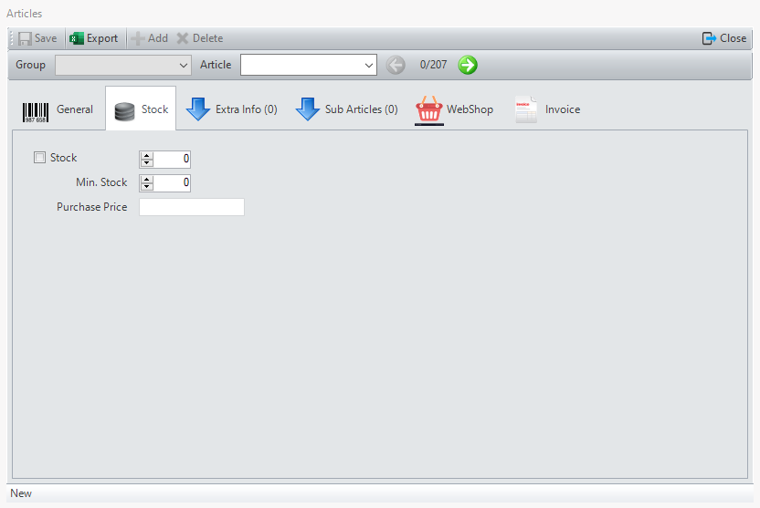 Let op: Voorlopig is er nog geen link tussen de verkoop van artikels in de webshop en de stock. Deze zal dus niet aangepast worden bij verkoop van artikels in de Webshop.