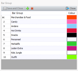 Hier stel je de Bar groepen in die je reeds aanmaakte. Via aparte Bar groepen kan je artikels opdelen in bepaalde categorieën.