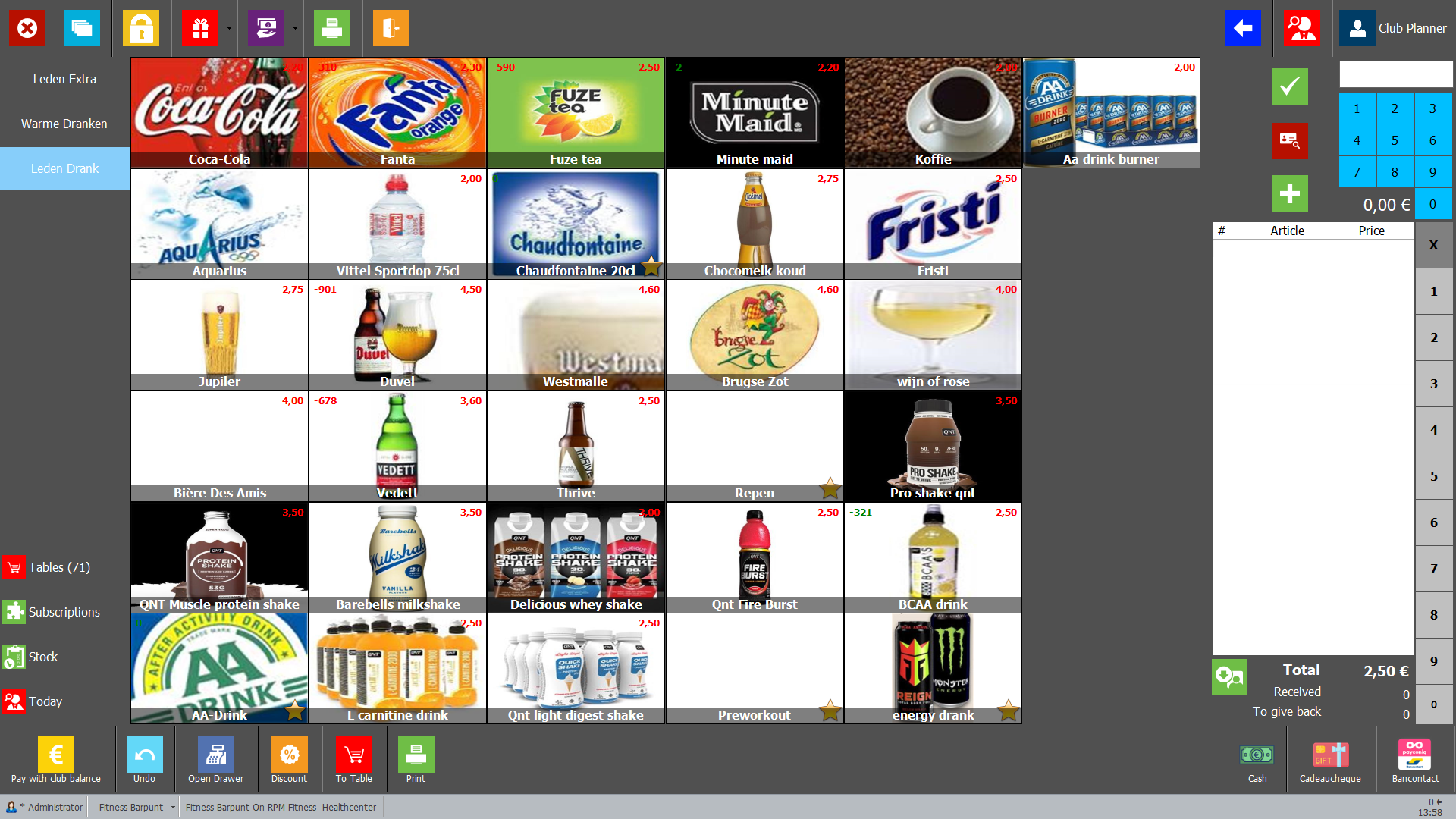 Bartender is een module binnen Club Planner die toelaat om artikels in een interface te gieten om deze gemakkelijk in te geven en te verkopen aan je leden.