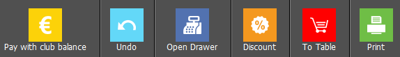 | Betaal met club saldo | Gebruik club saldo uit de ledenfiche van het geselecteerde lid om een aankoop te doen. | Ongedaan maken | Maak de verkoop van het vorige artikel ongedaan. |