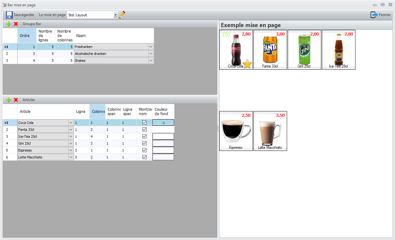 Artikels instellen in de Bartender doe je door naar Pos ⇒ Verkoop ⇒ Layout.