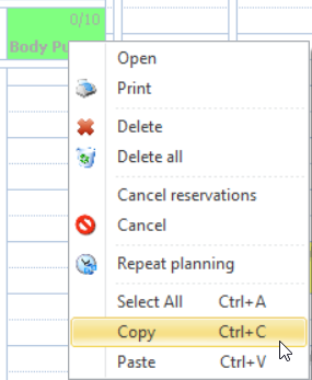 Indien je snel één of een handvol activiteiten van dezelfde dag wil dupliceren kan je dit doen door de activiteit(en) in kwestie te selecteren en deze te kopiëren en te plakken in een ander tijdslot (van een andere dag).