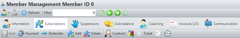 Verwijder | Verwijder een geselecteerd abonnement. Let op: het verwijderen van abonnementslijnen zorgt er ook voor dat alle betalingslijnen verwijderd worden. Hierdoor kan je omzetrapport mogelijks niet meer kloppen. | Contract | Laat het lid online een contract van een geselecteerd abonnement tekenen. |
