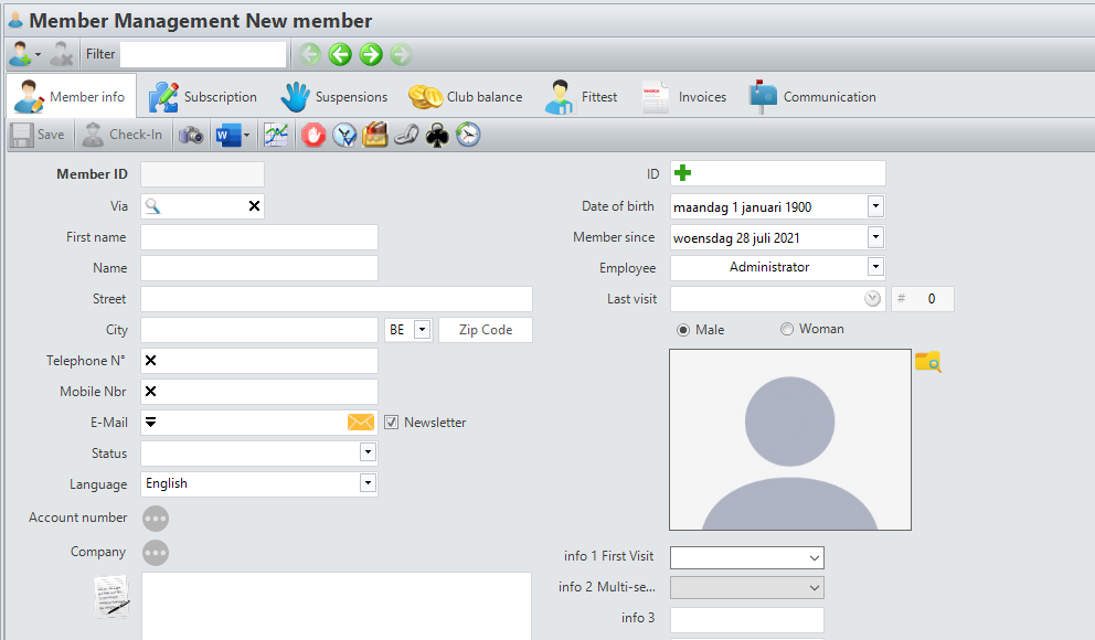 | Lees ID-kaart: gegevens aanvullen aan de hand van een ID-lezer. | Check-In | Check het lid in kwestie manueel in. | |