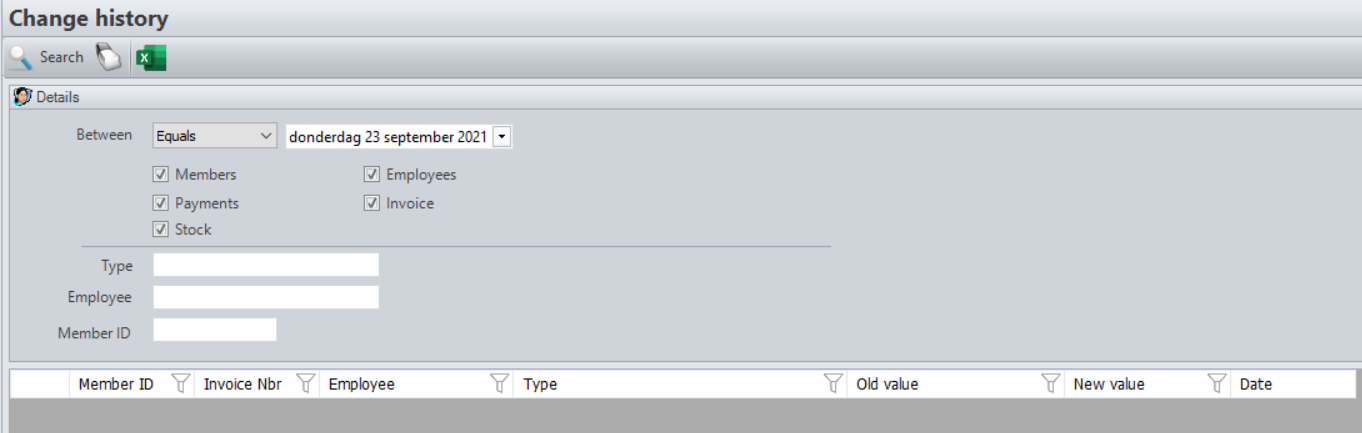 Filters wissen | Wis alle ingestelde filters. | Exporteren naar Excel | Exporteer de geselecteerde gegevens naar Excel. |