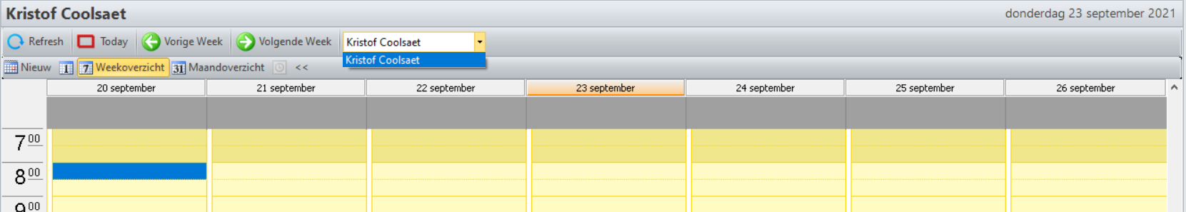 Personeelslid | Kies het personeelslid waarvan je het uurrooster wil zien. Enkel personeelsleden waarbij “Uurrooster” aangevinkt staat in hun personeelsfiche worden hier weergegeven. |