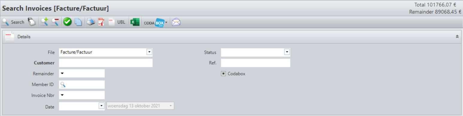 Zoek aan de hand van ingestelde filters bepaalde dossiers op (facturen, offertes, kredietnota's).