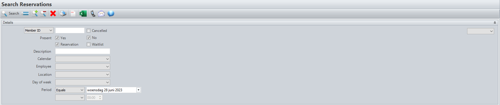 Bij Zoeken - Reservaties kan je alle reservaties van leden opzoeken aan de hand van filters.