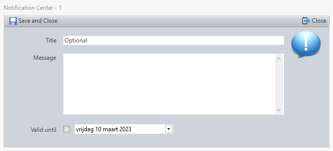 | Geldig tot | Geef een optionele vervaldatum aan het pushbericht. Na deze datum zal het bericht zichzelf verwijderen uit de app. |